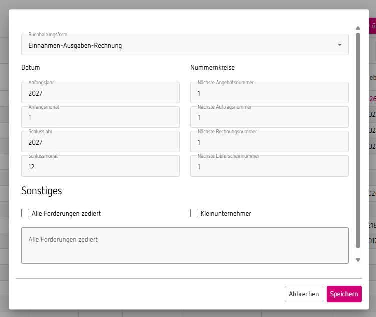 Neues Buchungsjahr anlegen und Buchhaltungsform ändern
